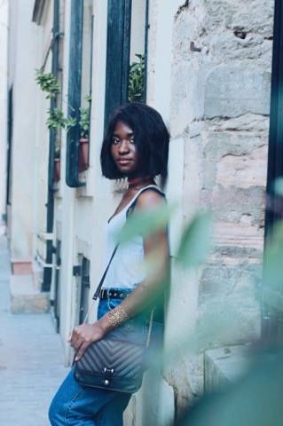 Pour cette tenue j’ai sorti le blazer, le choker et les kitten heels. Ces petites chaussures sont à ma mère, j'en suis totalement fan! Je n’avais jusqu’à maintenant jamais succombé pour une paire de chaussure à petit talon, ce que j’aime dans ce modèle c’est qu’elles restent classiques et originales à la fois, le bleu rajoute la parfaite touche de couleur.