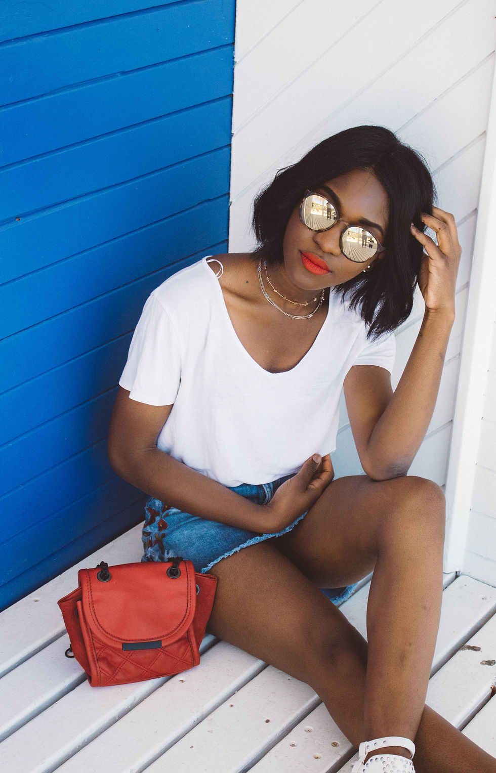 Finalement celle ci est top! Je l'ai associée à un t-shirt blanc tout simple et un sac rouge pour rappeler la couleur des fleurs brodées.